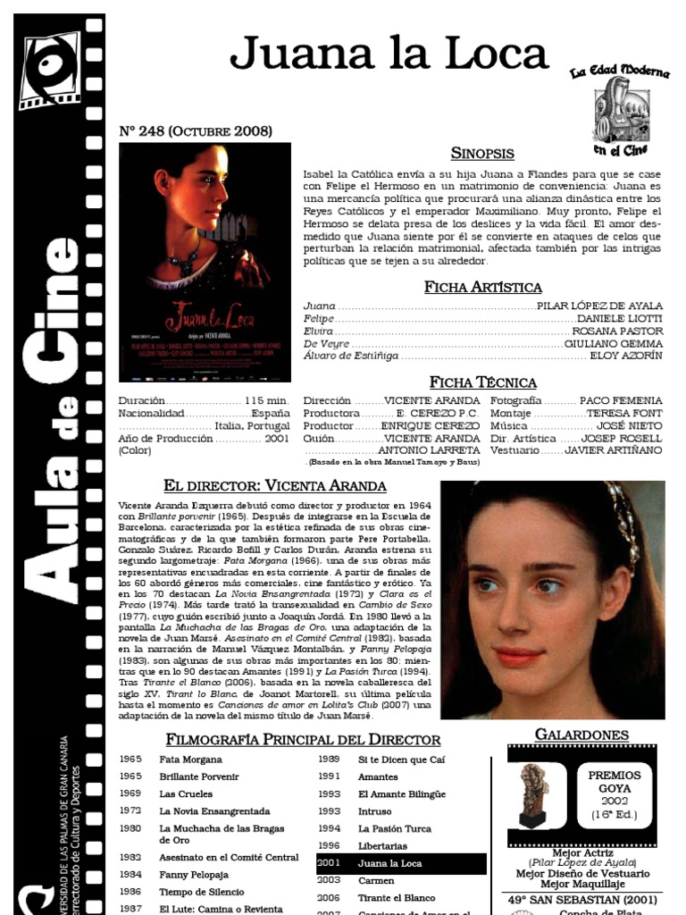 Il est connu pour les films juana la loca (2001), docteur jivago (2002) et piedras (2002). The image could not be loaded. Juana la loca är en film regisserad av vicente aranda och starring av pilar lópez de ayala, daniele liotti, rosana pastor. Спасибо за визит и внимание! Juana la loca, literally juana the mad) is a 2001 period drama film written and directed by vicente aranda starring pilar lópez de ayala a.